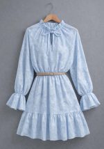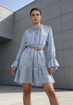 Κομψό και statement, το mini φόρεμα Devoré σε σιέλ απόχρωση, συνδυάζει ανάγλυφη υφή και αέρινη κίνηση με πρακτική εφαρμογή. Το devoré ύφασμα χαρίζει πολυτελές αποτέλεσμα και διακριτική διαφάνεια στο επάνω μέρος, ενώ το φόρεμα είναι φοδραρισμένο από τη μέση και κάτω, εξασφαλίζοντας άνεση και κάλυψη. Η ελαστική μέση με λάστιχο προσφέρει τέλεια εφαρμογή σε διαφορετικούς σωματότυπους, ενώ η ζώνη από δερματίνη τονίζει τη σιλουέτα και προσθέτει μοντέρνα αισθητική ισορροπία. Τα βολάν στο τελείωμα ολοκληρώνουν το look με ρομαντική κίνηση και θηλυκό χαρακτήρα. Ιδανική επιλογή για city chic εμφανίσεις, brunch looks, καλοκαιρινά events και day-to-night styling.