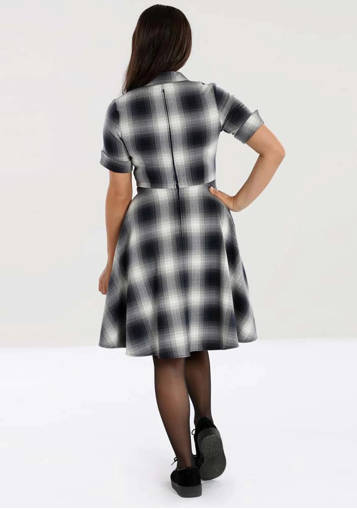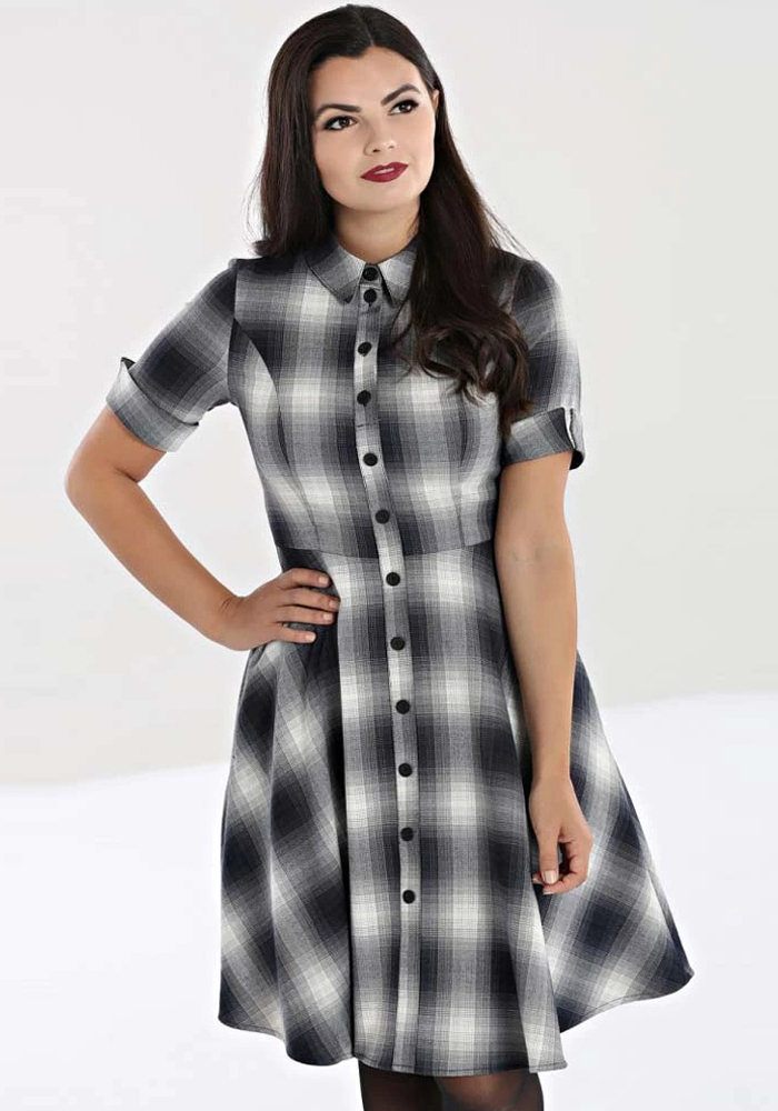 Casual, alternative φόρεμα από μαλακό καρώ, viscose blend ύφασμα με ελαστικότητα σε pixel fading καρώ tartan. Είναι σχεδιασμένο σε κλασικό πατρόν shirt dress, με γιακαδάκι, μανίκια με μανσέτα, structured κορμό & flare γραμμή ως το γόνατο. Cool & comfy για καθημερινό retro style με άποψη!