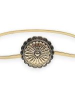 Εντυπωσιακή γυναικεία ελαστική ζώνη μέσης Amanda σε χρυσή απόχρωση, με statement στρογγυλή αγκράφα vintage αισθητικής. Ο μεταλλικός σχεδιασμός προσφέρει σταθερό κράτημα και άψογη εφαρμογή, ενώ η ελαστική κατασκευή προσαρμόζεται άνετα στη μέση, αναδεικνύοντας τη σιλουέτα. Ιδανική για φορέματα, μακριές τουνίκ, καφτάνια και ψηλόμεσα looks, αυτή η ζώνη λειτουργεί ως styling highlight, προσθέτοντας πολυτέλεια και fashion χαρακτήρα σε κάθε outfit. Ένα versatile αξεσουάρ που ανεβάζει άμεσα το επίπεδο εμφάνισης.