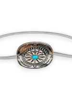 Κομψή γυναικεία ελαστική ζώνη μέσης Melissa σε ασημί μεταλλικό φινίρισμα με εντυπωσιακή οβάλ αγκράφα boho αισθητικής και διακοσμητική τιρκουάζ πέτρα στο κέντρο. Ο λεπτός μεταλλικός σχεδιασμός αγκαλιάζει τη μέση με άνεση, προσφέροντας σταθερό κράτημα και άψογη εφαρμογή χωρίς να βαραίνει το outfit. Ιδανική για φορέματα, kaftan looks, resort εμφανίσεις αλλά και καθημερινά chic σύνολα, αυτή η ζώνη λειτουργεί ως statement αξεσουάρ που αναβαθμίζει άμεσα το styling.