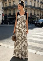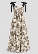 Ρομαντικό maxi φόρεμα Porcelain σε λευκή βάση με καφέ floral μοτίβο, ιδανικό για καλοκαιρινές εμφανίσεις σε νησί ή ιδιαίτερες περιστάσεις. Διαθέτει ελαστική μέση που αγκαλιάζει το σώμα και τιράντες που δένουν στους ώμους, προσθέτοντας θηλυκή και παιχνιδιάρικη λεπτομέρεια. Η αέρινη γραμμή του χαρίζει κίνηση και άνεση, ενώ το print του δίνει elegant resort χαρακτήρα.