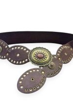 Εντυπωσιακή δερματίνη ελαστική ζώνη Phoenix σε καφέ απόχρωση, σχεδιασμένη για να προσθέτει χαρακτήρα και έμφαση στη μέση. Το κεντρικό μεταλλικό στοιχείο με ανάγλυφη vintage αισθητική και γήινη πέτρα δημιουργεί ένα ισχυρό statement, ιδανικό για boho και western-inspired εμφανίσεις. Τα διακοσμητικά οβάλ panels με μεταλλικά τρουκς και ethnic αισθητική δημιουργούν ένα δυναμικό boho-western αποτέλεσμα, ιδανικό για layered looks, maxi φορέματα, πουκάμισα και κιμονό. Η ελαστική βάση εξασφαλίζει άνετη εφαρμογή και σταθερότητα, χωρίς να περιορίζει την κίνηση.