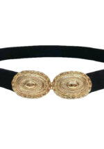 Η Adjust ζώνη σε μαύρο χώμα είναι ένα διαχρονικό κομμάτι που αποπνέει vintage φινέτσα. Κατασκευασμένη από ελαστικό ύφασμα, προσαρμόζεται εύκολα στο σώμα, ενώ η χρυσή διπλή αγκράφα με ανάγλυφη λεπτομέρεια προσθέτει μια αίσθηση πολυτέλειας. Ιδανική για να αναδείξει τη μέση σε φορέματα, πουκάμισα και πλεκτά, προσφέρει στυλ και άνεση με μια κομψή boho πινελιά.