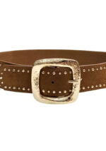 Η ζώνη Asa σε ταμπά χρώμα συνδυάζει boho χαρακτήρα και διαχρονική κομψότητα. Κατασκευασμένη από suede υλικό, διαθέτει λάστιχο στο πίσω μέρος για τέλεια εφαρμογή και μεταλλική αγκράφα σε χρυσό τόνο με διακοσμητικά τρουκς που προσθέτουν μια ιδιαίτερη rustic πινελιά. Αναδεικνύει τη μέση σε φορέματα, πουκάμισα ή πλεκτά, δίνοντας ένα sophisticated look που ολοκληρώνει κάθε outfit.