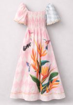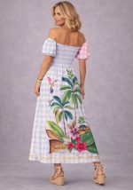 Boho maxi φόρεμα Bahia off-shoulder από λινό ύφασμα με εντυπωσιακό tropical print, με ροζ βάση στο μπροστινό μέρος και σιέλ βάση στο πίσω μέρος. Η φυσική υφή του λινού προσφέρει δροσερή αίσθηση και άνεση, καθιστώντας το ιδανικό για καλοκαιρινές εμφανίσεις. Το ελαστικό μπούστο με σφηκοφωλιά αγκαλιάζει τη σιλουέτα και προσφέρει σταθερή εφαρμογή, ενώ τα κοντά φουσκωτά μανίκια προσθέτουν ρομαντικό χαρακτήρα. Η maxi γραμμή με έντονο floral και εξωτικό μοτίβο δημιουργεί ένα statement αποτέλεσμα, ιδανικό για resort και vacation looks. Ένα εντυπωσιακό λινό φόρεμα που συνδυάζει άνεση, χρώμα και καλοκαιρινή κομψότητα.