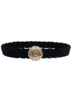 Η ζώνη Jackson σε μαύρο χρώμα συνδυάζει φυσικό boho χαρακτήρα και διακριτική κομψότητα. Από πλεκτό suede υλικό, με στρογγυλή μεταλλική αγκράφα σε vintage σχέδιο, προσφέρει ευελιξία και στυλ σε κάθε εμφάνιση. Ιδανική για φορέματα, ζακέτες ή πλεκτά, χαρίζει διακριτική έμφαση στη μέση και προσθέτει μια αυθεντική, χειροποίητη αίσθηση.