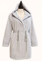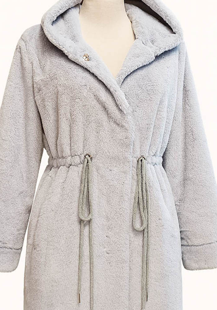 - Γυναικείο fluffy παλτό με κουκούλα σε γκρι χρώμα