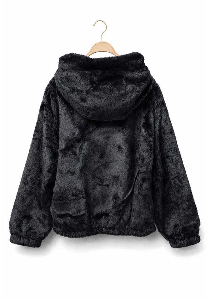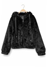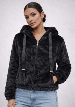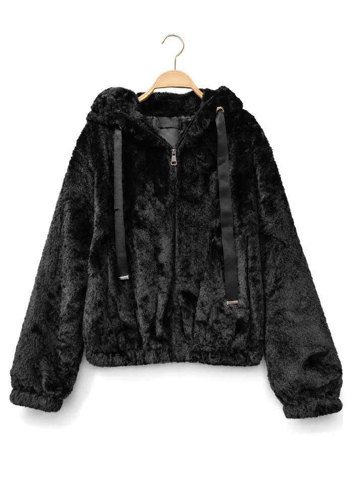 - Γυναικείο fluffy cropped jacket σε μαύρο