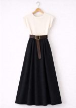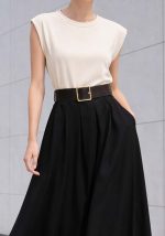 Κομψό maxi φόρεμα Doppio με διχρωμία εκρού με μαύρο και διπλή κατασκευή υφάσματος, σχεδιασμένο για άνεση στο επάνω μέρος και σταθερή δομή στη φούστα. Το ελαστικό επάνω μέρος εφαρμόζει άψογα στο σώμα προσφέροντας ελευθερία κίνησης και άνεση καθ’ όλη τη διάρκεια της ημέρας, ενώ το σταθερό ύφασμα στο κάτω μέρος χαρίζει κομψή πτώση και επαγγελματικό αποτέλεσμα στη σιλουέτα. Οι δομημένοι ώμοι ενισχύουν το μοντέρνο χαρακτήρα του φορέματος, ενώ η ζώνη στη μέση αναδεικνύει τη γραμμή της μέσης και δημιουργεί ισορροπημένο, δυναμικό look. Ιδανικό για business εμφανίσεις, city chic styling και after-office εξόδους.