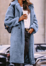Το γούνινο παλτό Teddy σε σιέλ είναι το απόλυτο must-have της σεζόν για στυλάτες χειμερινές εμφανίσεις με άνεση και φινέτσα.