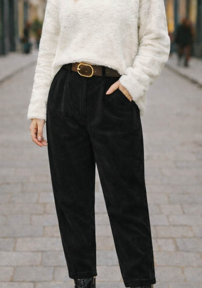 - Γυναικείο κοτλέ παντελόνι σε μαύρο χρώμα