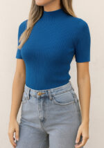 Το πλεκτό rib πετρόλ top Mirela είναι το κομμάτι που συνδυάζει απλότητα και κομψότητα σε κάθε εμφάνιση. Η ελαστική ριπ πλέξη του αγκαλιάζει το σώμα, ενώ ο γιακάς λουπέτο και τα κοντά μανίκια δημιουργούν ένα refined και minimal look. Το απαλό λιλά χρώμα προσθέτει θηλυκή νότα και φωτίζει κάθε outfit, από casual έως office chic. Ιδανικό για layering κάτω από σακάκια ή πλεκτά, αλλά και για αυτόνομη χρήση με παντελόνια ή φούστες.