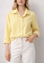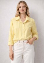 Κομψό γυναικείο πουκάμισο Stripes σε διαχρονικό κίτρινο-λευκό ριγέ μοτίβο, σχεδιασμένο για άνεση και επαγγελματική εμφάνιση. Διαθέτει κλασικό γιακά, κουμπιά σε όλο το μήκος και μακριά μανίκια με μανσέτα, προσφέροντας ευελιξία για καθημερινή χρήση στο γραφείο ή smart-casual εμφανίσεις. Η άνετη γραμμή του το καθιστά ιδανική επιλογή για συνδυασμούς με παντελόνια και μέσα από πλεκτά, προσδίδοντας καθαρό και προσεγμένο στυλ.