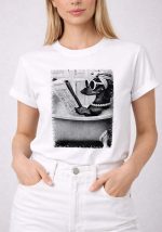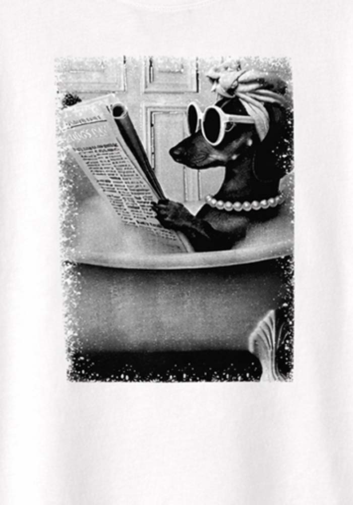 Γυναικείο T-shirt Posh Dog σε καθαρή λευκή απόχρωση με εντυπωσιακό ασπρόμαυρο graphic print στο μπροστινό μέρος. Το σχέδιο αποτυπώνει fashion-inspired σκηνή με μοντέρνα, urban αισθητική, δημιουργώντας ένα statement casual κομμάτι με χαρακτήρα. Η απαλή βαμβακερή υφή προσφέρει άνεση στην καθημερινή χρήση, ενώ η ίσια γραμμή και η στρογγυλή λαιμόκοψη το καθιστούν ευέλικτο για πολλαπλούς συνδυασμούς. Φοριέται ιδανικά με jeans, tailored παντελόνια ή σακάκι για elevated casual looks.