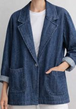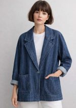 Γυναικείο denim σακάκι Filor σε διαχρονική μπλε απόχρωση, σχεδιασμένο σε χαλαρή oversized γραμμή για σύγχρονο casual layering. Το μαλακό denim ύφασμα από 100% Cotton προσφέρει άνεση και φυσική κίνηση, ενώ το κούμπωμα με ένα κουμπί ενισχύει τη minimal αισθητική. Διαθέτει κλασικό πέτο γιακά και δύο μεγάλες μπροστινές τσέπες, προσθέτοντας πρακτικότητα και relaxed χαρακτήρα. Τα γυρισμένα μανίκια ενισχύουν το effortless styling, καθιστώντας το ιδανικό για καθημερινά looks με t-shirt, πουκάμισο ή φόρεμα.