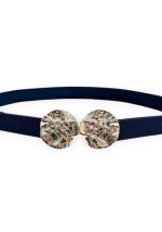 Σύγχρονη ελαστική ζώνη Goldie σε μπλε απόχρωση, σχεδιασμένη για να προσδίδει ένταση και refined χαρακτήρα σε κάθε σύνολο. Το κεντρικό διακοσμητικό στοιχείο με διπλή στρογγυλή μεταλλική αγκράφα σε χρυσό τόνο και ανάγλυφη textured επιφάνεια δημιουργεί ένα διακριτικό αλλά δυναμικό statement. Η ελαστική βάση προσφέρει άνετη και σταθερή εφαρμογή, αναδεικνύοντας τη μέση χωρίς να περιορίζει την κίνηση. Ιδανική επιλογή για φορέματα, σακάκια, jumpsuits και ψηλόμεσα bottoms, λειτουργεί ως κομβικό styling εργαλείο σε minimal, elegant και βραδινά looks.