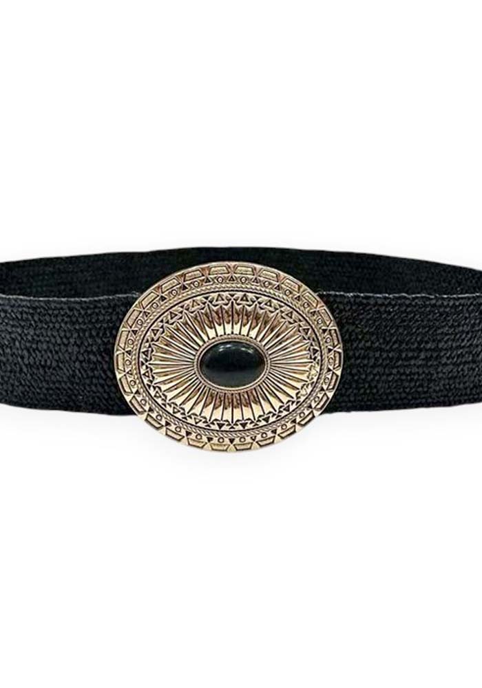 Minimal και δυναμική ελαστική ζώνη Missy σε μαύρο χρώμα, σχεδιασμένη για καθαρές γραμμές και σύγχρονο styling. Το κεντρικό στοιχείο με τη διπλή στρογγυλή χρυσή μεταλλική αγκράφα δημιουργεί ένα ισχυρό visual focus, προσθέτοντας πολυτέλεια και statement χαρακτήρα στο σύνολο. Η ελαστική ρυθμιζόμενη κατασκευή προσαρμόζεται άνετα στη μέση, προσφέροντας σταθερό κράτημα χωρίς περιορισμό στην κίνηση. Ιδανική για φορέματα, σακάκια, jumpsuits και ψηλόμεσα παντελόνια, λειτουργεί ως key styling piece που αναβαθμίζει άμεσα τόσο καθημερινά όσο και βραδινά looks.