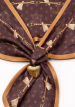 Elegant κολιέ Trending 4 με υφασμάτινο φουλάρι σε καφέ απόχρωση, διακοσμημένο με μοτίβο εμπνευσμένο από ιππικό στυλ και διακριτικό πουά pattern. Το σχέδιο ολοκληρώνεται με μεταλλικό στοιχείο σε χρυσή απόχρωση που προσθέτει κομψότητα και πολυτελή αισθητική. Η απαλή υφή του φουλαριού επιτρέπει άνετη εφαρμογή, ενώ οι γήινες αποχρώσεις το καθιστούν ιδανικό για sophisticated καθημερινά looks αλλά και πιο κομψές εμφανίσεις. Το συγκεκριμένο αξεσουάρ λειτουργεί ως statement στοιχείο που αναβαθμίζει εύκολα basic σύνολα. Ιδανικό για συνδυασμό με πουκάμισα, φορέματα ή minimal tops, προσφέροντας refined και διαχρονικό αποτέλεσμα.