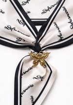 Κομψό κολιέ Trending 1 που συνδυάζει μεταξωτό φουλάρι σε ασπρόμαυρη απόχρωση με διακοσμητικό στοιχείο χρυσής πεταλούδας, δημιουργώντας ένα ιδιαίτερο fashion accessory με statement χαρακτήρα. Το σχέδιο προσφέρει μοντέρνα αισθητική και αποτελεί ιδανική επιλογή για να αναβαθμίσει τόσο καθημερινά όσο και πιο κομψά σύνολα. Το μαλακό ύφασμα αγκαλιάζει διακριτικά τον λαιμό, ενώ το χρυσό μεταλλικό στοιχείο σε σχήμα πεταλούδας προσθέτει λάμψη και θηλυκότητα. Η ασπρόμαυρη παλέτα επιτρέπει εύκολους συνδυασμούς με minimal ή elegant εμφανίσεις, καθιστώντας το αξεσουάρ versatile και διαχρονικό. Ιδανικό για styling με φορέματα, πουκάμισα ή basic tops, προσφέροντας ένα refined και fashionable αποτέλεσμα.