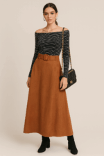 Η suede midi φούστα με ζώνη Betty αποτελεί μια κομψή και διαχρονική επιλογή για κάθε γκαρνταρόμπα. Ο minimal σχεδιασμός της αναδεικνύεται με τη μαλακή υφή suede και τη ζώνη στη μέση που προσφέρει άψογη εφαρμογή και θηλυκό στυλ. Συνδυάζεται εύκολα με πουκάμισα, μπλούζες ή πλεκτά, ιδανική για office looks αλλά και πιο chic εμφανίσεις.