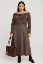 Η suede midi φούστα με ζώνη Betty αποτελεί μια κομψή και διαχρονική επιλογή για κάθε γκαρνταρόμπα. Ο minimal σχεδιασμός της αναδεικνύεται με τη μαλακή υφή suede και τη ζώνη στη μέση που προσφέρει άψογη εφαρμογή και θηλυκό στυλ. Συνδυάζεται εύκολα με πουκάμισα, μπλούζες ή πλεκτά, ιδανική για office looks αλλά και πιο chic εμφανίσεις.