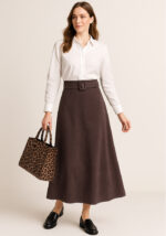 Η suede midi φούστα με ζώνη Betty αποτελεί μια κομψή και διαχρονική επιλογή για κάθε γκαρνταρόμπα. Ο minimal σχεδιασμός της αναδεικνύεται με τη μαλακή υφή suede και τη ζώνη στη μέση που προσφέρει άψογη εφαρμογή και θηλυκό στυλ. Συνδυάζεται εύκολα με πουκάμισα, μπλούζες ή πλεκτά, ιδανική για office looks αλλά και πιο chic εμφανίσεις.