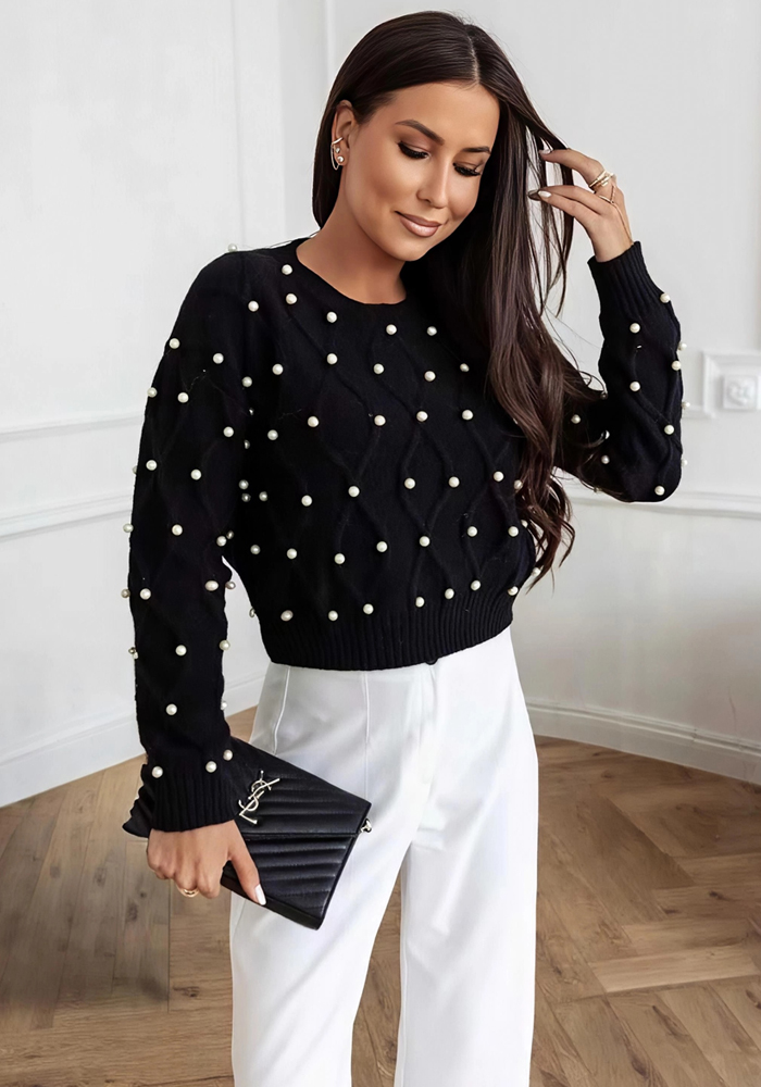 Το μαύρο πλεκτό με διακοσμητικές πέρλες Charlize αποτελεί ένα refined knitwear piece, σχεδιασμένο για σύγχρονα, polished outfits. Η καπιτονέ υφή του δημιουργεί διακριτική δομή, ενώ οι διάσπαρτες πέρλες αναβαθμίζουν το look με έναν διαχρονικά κομψό και ταυτόχρονα statement χαρακτήρα. Η cropped γραμμή του προσφέρει άψογη ισορροπία με ψηλόμεσα παντελόνια ή φούστες, καθιστώντας το ιδανικό τόσο για day-to-night εμφανίσεις όσο και για special occasions. Ένα ευέλικτο κομμάτι που ενισχύει άμεσα την εικόνα του outfit με premium αισθητική.