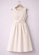 Κομψό midi φόρεμα Lucy σε μπεζ απόχρωση, κατασκευασμένο από ανάγλυφο μπροκάρ ύφασμα που προσφέρει πολυτελή αίσθηση και διακριτική λάμψη. Η αμάνικη γραμμή με στρογγυλή λαιμόκοψη δημιουργεί καθαρή, minimal αισθητική, ενώ η ενσωματωμένη ζώνη στη μέση τονίζει τη σιλουέτα και εξασφαλίζει άριστη εφαρμογή. Η άνετη κλος γραμμή και το midi μήκος το καθιστούν ιδανική επιλογή για επίσημες περιστάσεις, καλοκαιρινές εκδηλώσεις, γάμους, βαπτίσεις ή chic daytime εμφανίσεις. Ένα διαχρονικό κομμάτι που συνδυάζει κομψότητα, άνεση και σύγχρονο design.