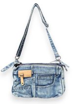 Γυναικεία τσάντα ώμου June από denim ύφασμα σε ανοιχτή μπλε απόχρωση, με μοντέρνα urban αισθητική και λειτουργικό σχεδιασμό. Διαθέτει κλείσιμο με φερμουάρ στο επάνω μέρος και πλήρως επενδυμένο εσωτερικό για μεγαλύτερη αντοχή και ασφάλεια. Ο σχεδιασμός της παραπέμπει σε iconic jean γραμμή, με εξωτερικές τσέπες εμπρός και πίσω που ενισχύουν τόσο το στυλ όσο και την πρακτικότητα. Το ρυθμιζόμενο λουράκι επιτρέπει χρήση ως shoulder, crossbody και χειρός, καθιστώντας την ιδανική για καθημερινές casual και street style εμφανίσεις.