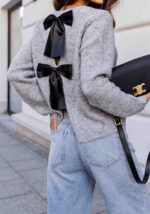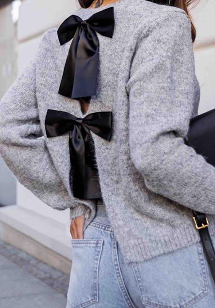Η πλεκτή μπλούζα Bow γκρι είναι ο ορισμός του ρομαντικού cozy chic στυλ. Σε γκρι χρώμα με αφράτη υφή, προσφέρει ζεστασιά και απαλή αίσθηση στο δέρμα, ενώ το εντυπωσιακό άνοιγμα στην πλάτη με δύο μαύρους σατέν φιόγκους προσδίδει ένα απρόσμενα θηλυκό twist. Η χαλαρή γραμμή της την καθιστά ιδανική για καθημερινές αλλά και πιο ιδιαίτερες εμφανίσεις — συνδυάζεται τέλεια με mini ή midi φούστες, jeans και suede boots.