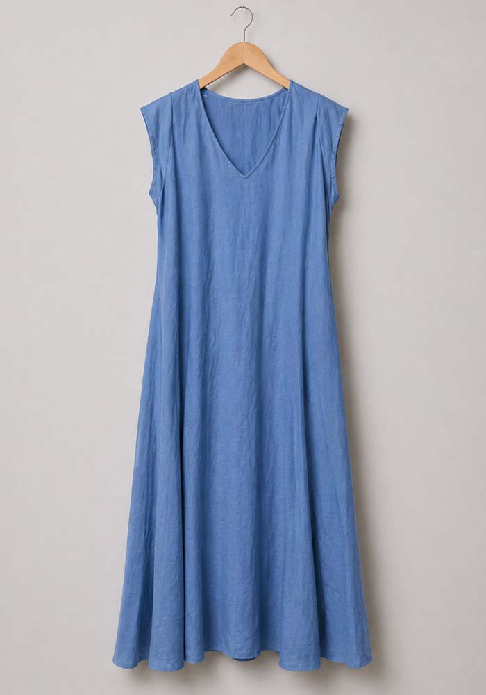 Αέρινο maxi φόρεμα Dido σε μπλε ραφ απόχρωση με minimal αισθητική και χαλαρή γραμμή που αγκαλιάζει το σώμα χωρίς να το πιέζει. Διαθέτει V λαιμόκοψη και πρακτικές πλαϊνές τσέπες, συνδυάζοντας άνεση και στιλ για καθημερινές εμφανίσεις. Το βισκόζ ύφασμά του έχει φυσική υφή και ελαφριά κίνηση, ιδανικό για all-day wear.