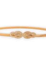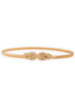 Λεπτή μεταλλική ζώνη Gordian strass σε χρυσή απόχρωση, με κομψό διακοσμητικό κούμπωμα στο κέντρο, εμπνευσμένο από κλασικά vintage μοτίβα. Ο minimal σχεδιασμός της την καθιστά ιδανική για να τονίσει τη μέση χωρίς να βαραίνει το σύνολο, προσθέτοντας διακριτική λάμψη και refined χαρακτήρα. Φοριέται άψογα πάνω από φορέματα, σακάκια ή πλεκτά, αναβαθμίζοντας τόσο καθημερινές όσο και πιο επίσημες εμφανίσεις. Αποτελεί διαχρονικό αξεσουάρ που λειτουργεί ως styling statement με καθαρά θηλυκή αισθητική.