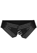 Η μαύρη ελαστική ζώνη με ασημί τρουκς αποτελεί ένα statement αξεσουάρ που αναβαθμίζει άμεσα κάθε outfit, από φορέματα και πουκαμίσες έως oversized πλεκτά. Ο συνδυασμός ελαστικής βάσης και σταθερού μπροστινού τμήματος προσφέρει άριστη εφαρμογή και σταθερότητα στη μέση, ενώ τα χρυσά τρουκς δημιουργούν έντονο, contemporary αποτέλεσμα με διακριτή rock-chic αισθητική. Η μεταλλική αγκράφα σε χρυσή απόχρωση προσθέτει premium χαρακτήρα, καθιστώντας τη ζώνη ιδανική για ολοκληρωμένα looks με δυναμικό styling.