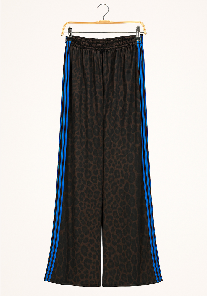 Η λεοπάρ παντελόνα Sporty με ρουά ρίγες συνδυάζει fashion-forward αισθητική και athleisure χαρακτήρα, προσφέροντας ένα statement κομμάτι που ανανεώνει άμεσα κάθε σύγχρονο γκαρνταρόμπα. Διαθέτει ελαστική μέση που εξασφαλίζει άνεση και σταθερή εφαρμογή ενώ οι έντονες μπλε ρουά πλαϊνές ρίγες προσθέτουν urban contrast. Ένα κομμάτι ιδανικό για day-to-night looks, city styling και fashion mixes με basic tops ή oversized πλεκτά. Μια παντελόνα για γυναίκες που επιλέγουν δυναμική εικόνα και τολμηρό, αλλά κομψό design.