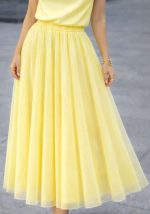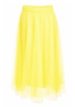 Κομψή φούστα Poeme από ανάλαφρο tulle ύφασμα σε 3/4 μάκρος, σχεδιασμένη για elegant και σύγχρονες εμφανίσεις. Είναι σχεδιασμένη με ελαστική μέση που προσφέρει άνετη εφαρμογή και σταθερό κράτημα, πλήρως φοδραρισμένη, ενώ οι ημιδιάφανες στρώσεις δημιουργούν κίνηση και αέρινο αποτέλεσμα στο περπάτημα. Η έντονη κίτρινη απόχρωση προσθέτει φρεσκάδα και δυναμισμό στο styling, καθιστώντας τη φούστα ιδανική επιλογή για spring–summer looks, επίσημες εξόδους, εκδηλώσεις αλλά και fashion-forward καθημερινά outfits. Συνδυάζεται άψογα με basic tops, σατέν πουκάμισα ή knitwear για ισορροπημένο αποτέλεσμα.