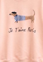 Γυναικείο φούτερ σε ροζ σομόν απόχρωση με statement print “Je T’aime Paris” και playful illustration dachshund σε navy–λευκές ρίγες. Το σχέδιο συνδυάζει casual αισθητική με γαλλικό χαρακτήρα, δημιουργώντας ένα κομμάτι που ξεχωρίζει χωρίς υπερβολές. Η relaxed γραμμή και η rib τελείωση σε λαιμό, μανσέτες και τελείωμα εξασφαλίζουν άνετη εφαρμογή και σταθερή φόρμα. Ιδανικό για καθημερινά city looks, travel outfits ή smart-casual styling με blazer και denim.