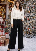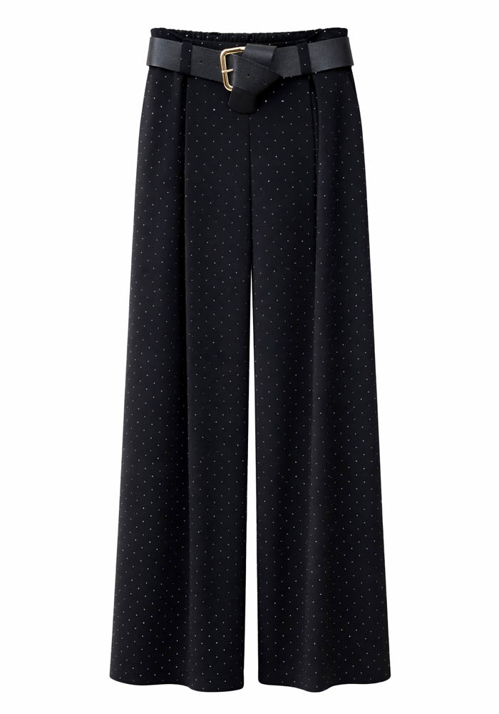 - Μαύρη wide-leg παντελόνα με διακριτική λάμψη