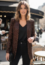 Το σακάκι Opera σε καφέ αποτελεί ένα διαχρονικό κομμάτι που αποπνέει κομψότητα και δυναμισμό. Σε μεταλλική καφέ-χάλκινη απόχρωση με λεπτομέρειες από παγιέτες, προσφέρει λαμπερή αλλά εκλεπτυσμένη εμφάνιση, ιδανική για βραδινές ή επαγγελματικές περιστάσεις. Η εφαρμοστή γραμμή αγκαλιάζει διακριτικά τη σιλουέτα, ενώ το minimal κόψιμο το καθιστά μοντέρνο και ευκολοφόρετο από το πρωί έως το βράδυ. Συνδυάζεται άψογα με παντελόνια cigarette, ψηλόμεσα jeans ή midi φούστες, προσδίδοντας άμεσα μια sophisticated, Parisian αισθητική.