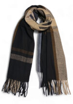 Το καρό κασκόλ Black Check είναι το απόλυτο αξεσουάρ για κομψές, χειμερινές εμφανίσεις.Απαλό στην υφή και ευχάριστο στη χρήση, συνδυάζει μαύρο, γκρι και γήινα καφέ μπεζ χρώματα σε διακριτικό καρό σχέδιο. Τα κρόσσια στο τελείωμα προσθέτουν μια ρομαντική και boho πινελιά, ενώ το μεγάλο του μέγεθος επιτρέπει να φορεθεί είτε ριχτό στους ώμους είτε γύρω από τον λαιμό για extra cozy στυλ.