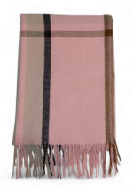 Το καρό κασκόλ Rose Check είναι το απόλυτο αξεσουάρ για κομψές, χειμερινές εμφανίσεις.Απαλό στην υφή και ευχάριστο στη χρήση, συνδυάζει ζεστά ροζ και γήινα μπεζ-καφέ χρώματα σε διακριτικό καρό σχέδιο. Τα κρόσσια στο τελείωμα προσθέτουν μια ρομαντική και boho πινελιά, ενώ το μεγάλο του μέγεθος επιτρέπει να φορεθεί είτε ριχτό στους ώμους είτε γύρω από τον λαιμό για extra cozy στυλ.
