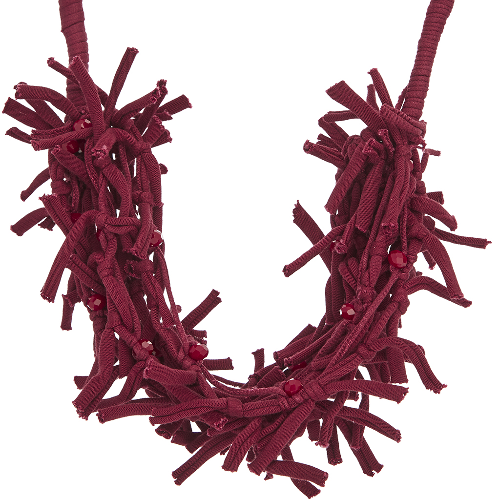 Original price was: 35,00 €.28,00 €Η τρέχουσα τιμή είναι: 28,00 €.κολιέ χειροποίητο από ύφασμα και χάνδρες Madeira μπορντώ