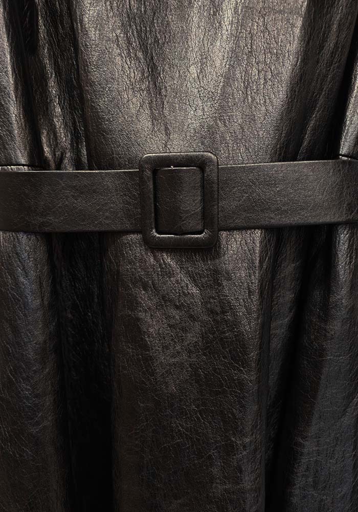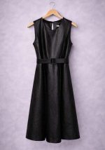Midi φόρεμα Grazia από δερματίνη (eco leather) σε μαύρη απόχρωση, σχεδιασμένο για δυναμικές, σύγχρονες εμφανίσεις. Η αμάνικη γραμμή και το στρογγυλό ντεκολτέ προσφέρουν minimal αισθητική, ενώ η ζώνη από το ίδιο υλικό τονίζει τη μέση και χαρίζει θηλυκή σιλουέτα. Η Α-line φούστα με άνετη κίνηση καθιστά το φόρεμα ιδανικό τόσο για day-to-night looks όσο και για πιο polished urban εμφανίσεις. Φοριέται άνετα με ankle boots, loafers ή statement sneakers, αποτελώντας ένα ευέλικτο κομμάτι για capsule γκαρνταρόμπα.Ιδανική επιλογή για γυναίκες που αναζητούν σύγχρονο, fashion-forward φόρεμα με χαρακτήρα.