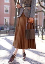 Fashionable πλισέ φούστα από ματ δερματίνη με μάκρος 3/4 & άνετο λάστιχο στη μέση. Συνδυάστε ευρηματικά!
