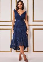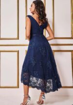 Επίσημο, chic φόρεμα από κεντημένο τούλι δαντέλα με detailed στρίφωμα. Το επάνω τμήμα είναι σε κρουαζέ με πιέτες, σατέν φάσα στη μέση , ενώ το κάτω τμήμα σε ελαφρά ασύμμετρη γραμμή κλος, πλήρως φοδραρισμένο με jersey. Ιδανικό φόρεμα για Γάμο & Βάπτιση!