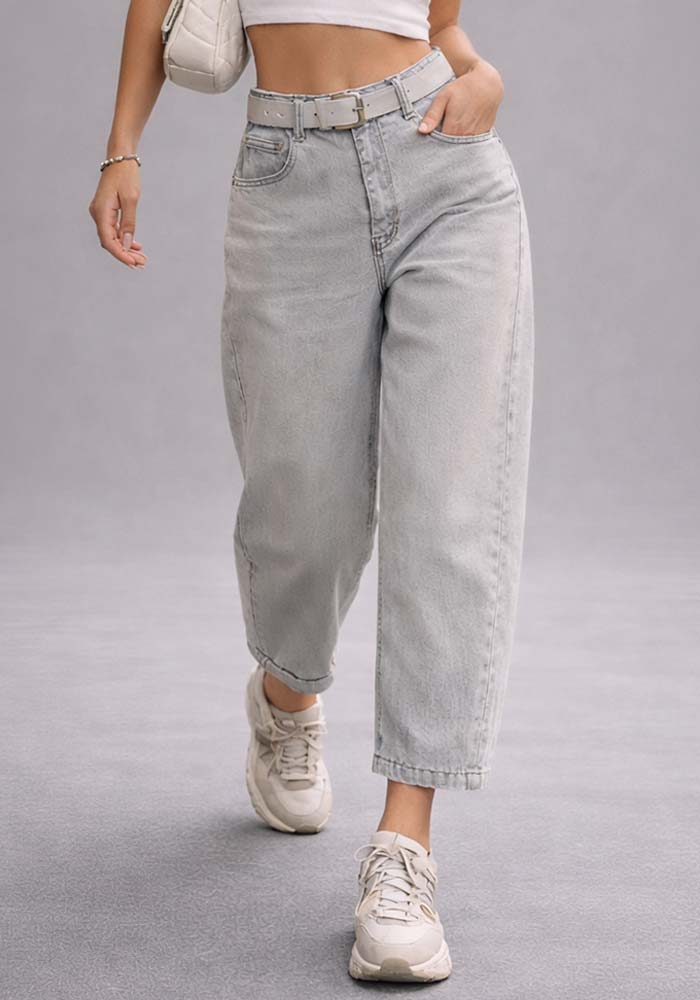 Ανανεώστε το καθημερινό σας styling με αυτό το μοντέρνο γυναικείο τζιν crop παντελόνι Andrea σε ανοιχτή γκρι απόχρωση. Διαθέτει ψηλόμεση γραμμή και relaxed loose fit εφαρμογή που προσφέρει άνεση και σύγχρονη αισθητική. Η minimal ζώνη σε ανοιχτό τόνο ολοκληρώνει το look, προσδίδοντας καθαρό και premium αποτέλεσμα. Το ελαφρύ washed denim ύφασμα εξασφαλίζει άνετη εφαρμογή και ευκολία στην κίνηση, καθιστώντας το ιδανική επιλογή για καθημερινά outfits, streetwear εμφανίσεις αλλά και casual chic συνδυασμούς. Συνδυάζεται άψογα με crop tops, basic t-shirts, sneakers ή statement αξεσουάρ.