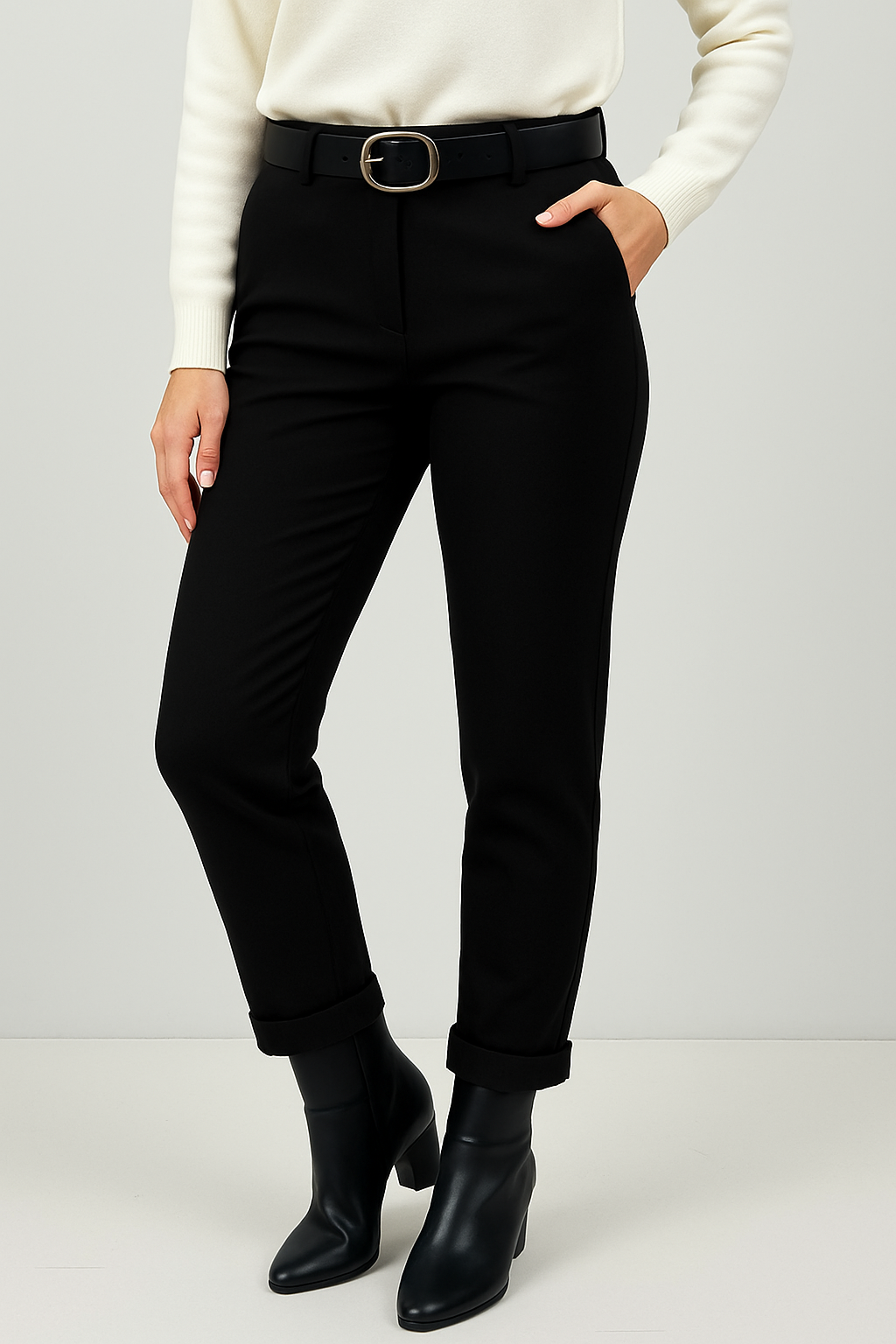 Must have, classic παντελόνι Office 3 σε μαύρο χρώμα, από ελαστική ποντοστόφα με ”σφιχτή” ελαστικότητα, που δεν μαρκάρει. Είναι σχεδιασμένο σε υψηλόμεσο πατρόν, ίσια γραμμή, κλείσιμο μπροστά με φερμουάρ, λοξές τσέπες στο πλάι και matching ζώνη. Κλασικό γυναικείο παντελόνι με ίσια γραμμή και διακριτική ζώνη στη μέση. Ένα ευέλικτο κομμάτι που ταιριάζει τόσο σε επαγγελματικές όσο και σε casual εμφανίσεις.Τέλειο office παντελόνι για όλες τις ώρες!