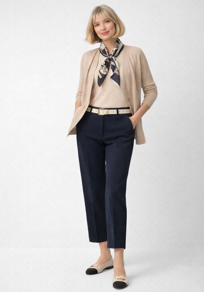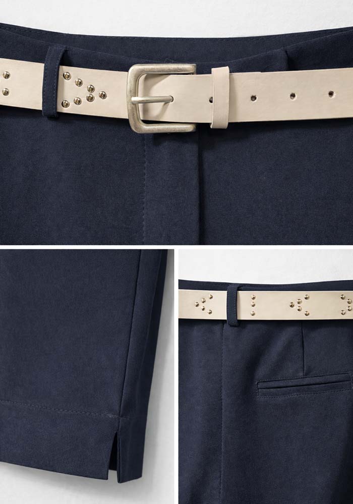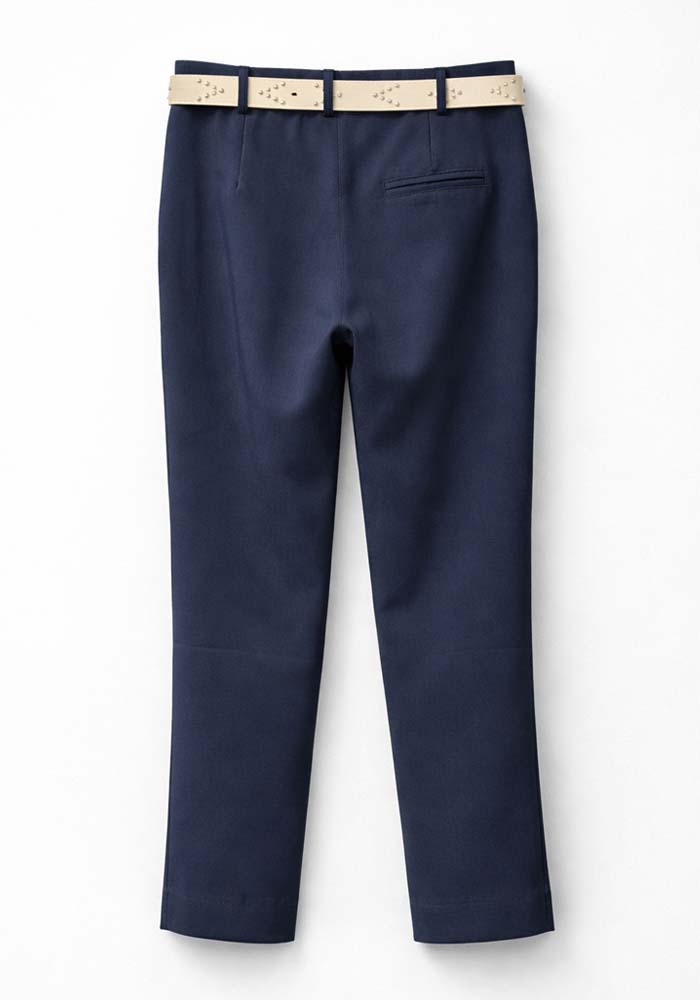 Γυναικείο tailored παντελόνι Office 4, σε κομψή navy απόχρωση, σχεδιασμένο για σύγχρονες office και smart-casual εμφανίσεις. Η καθαρή, ίσια γραμμή και η δομημένη εφαρμογή προσφέρουν κομψότητα και επαγγελματικό χαρακτήρα, ενώ το cropped μήκος αναδεικνύει το τελείωμα και επιτρέπει ευέλικτους συνδυασμούς με loafers ή heels. Συνοδεύεται από διακοσμητική ζώνη σε ουδέτερη απόχρωση με μεταλλικές λεπτομέρειες, προσθέτοντας refined contrast και ολοκληρωμένο styling αποτέλεσμα. Η minimal αισθητική το καθιστά βασικό κομμάτι για capsule επαγγελματική γκαρνταρόμπα. Ιδανική επιλογή για γυναίκες που αναζητούν ισορροπία μεταξύ άνεσης, κομψότητας και σύγχρονου tailoring.