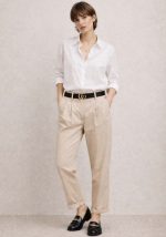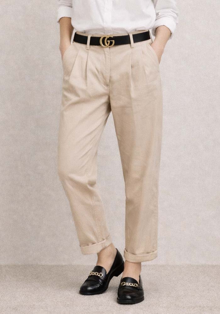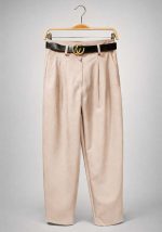 Το παντελόνι δερματίνη carrot Jill σε κομψή nude–beige απόχρωση αποτελεί statement κομμάτι για σύγχρονες και refined εμφανίσεις. Η υψηλή μέση με πιέτες δημιουργεί κολακευτική σιλουέτα, ενώ η δερματίνη με ματ φινίρισμα προσδίδει premium αισθητική και δομημένο αποτέλεσμα. Η ίσια, ελαφρώς χαλαρή γραμμή εξασφαλίζει άνετη εφαρμογή και ευκολία στο styling, από office looks έως evening outfits. Η ζώνη με μεταλλική αγκράφα ενισχύει τον fashion χαρακτήρα και ολοκληρώνει το tailored αποτέλεσμα. Ιδανικό για συνδυασμό με πλεκτά, πουκάμισα ή cropped tops.