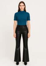 Το δερματίνη παντελόνι Mariah σε μαύρο είναι η ιδανική επιλογή για μοντέρνες και δυναμικές εμφανίσεις. Κατασκευασμένο από μαλακή δερματίνη υψηλής ποιότητας, χαρίζει πολυτελή υφή και άψογη εφαρμογή. Η γραμμή καμπάνα προσδίδει ρετρό θηλυκότητα, ενώ το ψηλόμεσο κόψιμο αναδεικνύει τη σιλουέτα. Συνδυάζεται εύκολα με πουκάμισα, πλεκτά ή σακάκια για εμφανίσεις που αποπνέουν αυτοπεποίθηση και στυλ, από το πρωί έως το βράδυ.