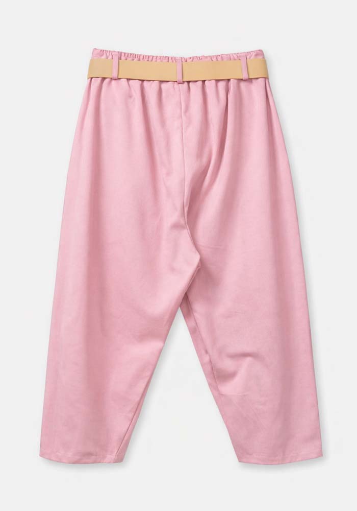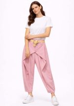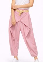 Γυναικείο παντελόνι New Age σε ροζ απόχρωση με σύγχρονη balloon/sarouel γραμμή, που συνδυάζει minimal αισθητική με ιδιαίτερη αρχιτεκτονική φόρμα. Το μπροστινό μέρος διαθέτει ασύμμετρο σταυρωτό πατρόν με διακοσμητικό κουμπί, δημιουργώντας ένα fashion-forward αποτέλεσμα που διαφοροποιεί το κλασικό office look. Η ελαστική μέση στο πίσω μέρος εξασφαλίζει άνετη εφαρμογή και προσαρμοστικότητα, ενώ η αποσπώμενη ζώνη δερματίνης σε μπεζ τόνο προσθέτει contrast και ολοκληρώνει το styling. Ιδανική επιλογή για σύγχρονα city looks, minimal layering και elevated καθημερινές εμφανίσεις.